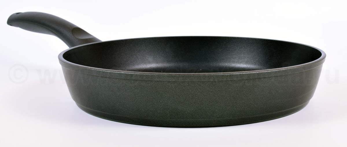 Сковорода 28см НЕВА МЕТАЛЛ ПОСУДА Оригинальная с антипригарным покрытием Нева Металл Посуда Оригинальная Сковорода НЕВА МЕТАЛЛ ПОСУДА Оригинальная сделана из высококачественного алюминия с антипригарным покрытием на водной основе. Подходит ко всем типам плит, кроме индукционных. Можно использовать в посудомоечной машине. Произведена в России и имеет гарантию 1 год. Внешний вид сковороды НЕВА МЕТАЛЛ ПОСУДА Оригинальная: Черная внутри и