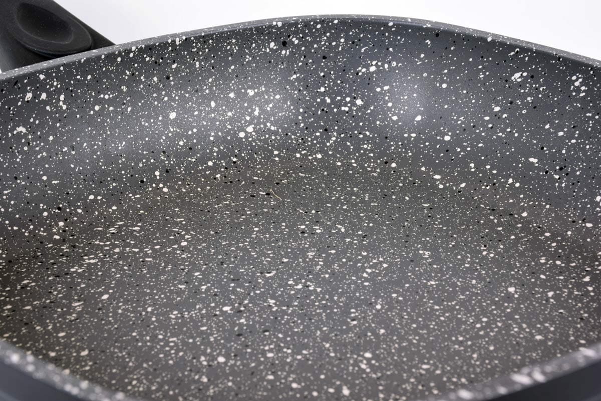 Каменное покрытие является одним из самых прочных и долговечных среди покрытий, не утрачивает свои антипригарные свойства в течение всего срока службы посуды, устойчиво к механическим повреждениям.