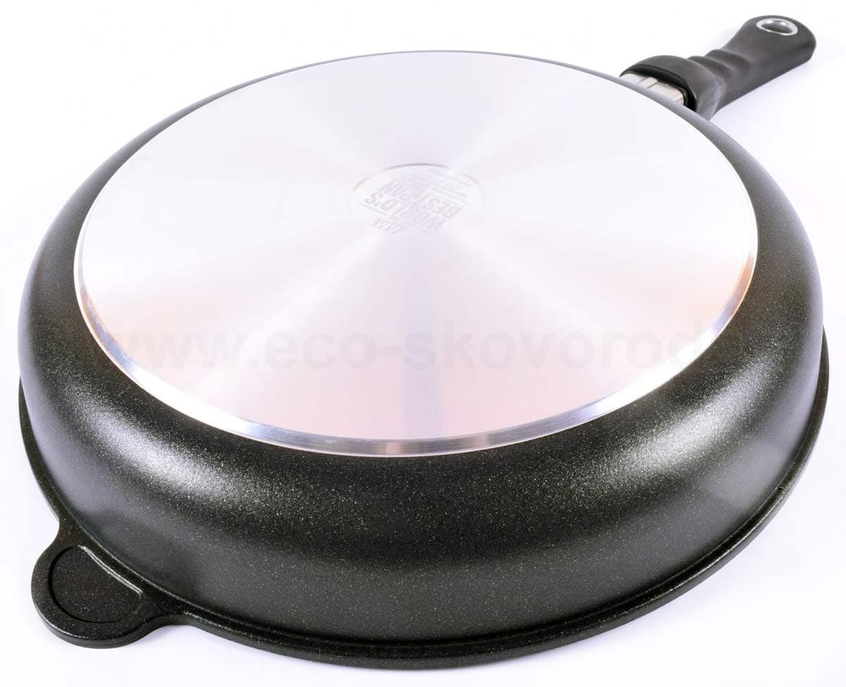 Утолщенное дно уберегает продукты от сгорания, дает более равномерное распределение тепла, прогрев посуды, аккумулирует тепло и не дает пище остывать долгое время. При таком подходе Вы можете выключать плиту заранее, а пища дойдет естественным способом и ее не надо разогревать несколько раз. Таким образом достигается экономия электроэнергии.