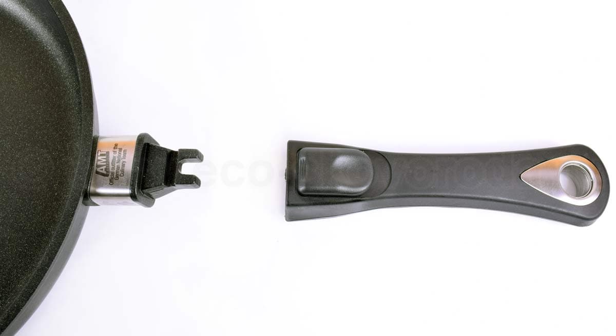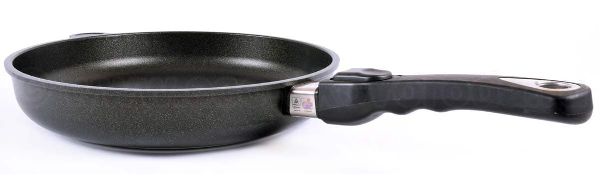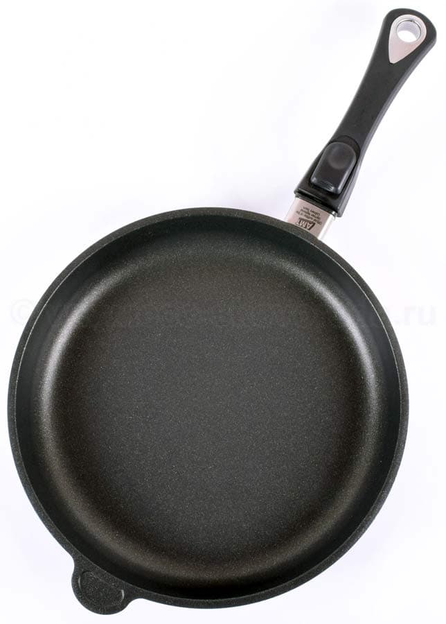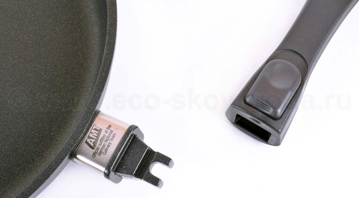 Литые сковороды AMT прекрасно используются в духовке, даже не снимая ручки, так как они выдерживают температуру до 240С.