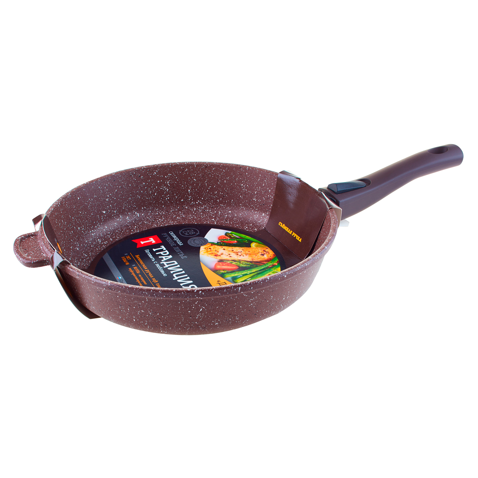 Серия Доломит представлена сковородами с прочным литым корпусом и каменным покрытием, произведена российской торговой маркой посуды Традиция. Все товары данной серии производятся в России в соответствии с ГОСТами.