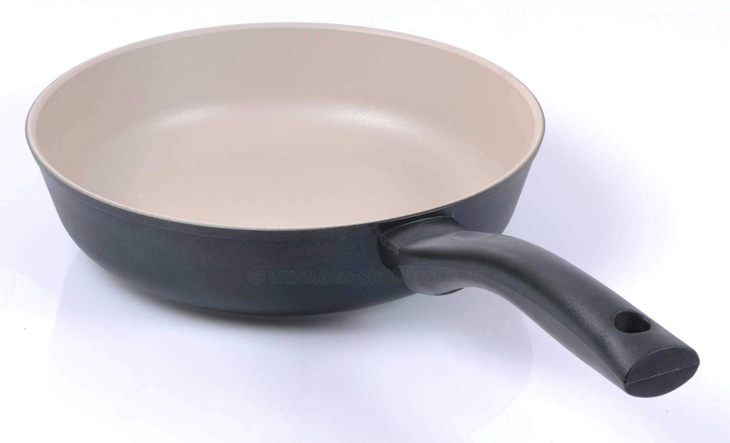 Сковороды имеют практичный черный внешний цвет, ухаживать за которым достаточно просто. Внутри новое трехслойное антипригарное покрытие на водной основе Eterna светлого цвета с добавлением керамических частиц для усиления покрытия и увеличения срока службы сковороды.
