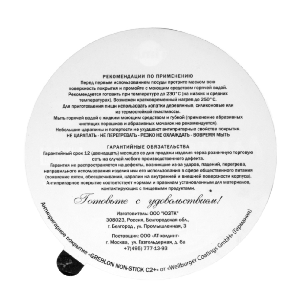 Товар является экологически безопасным, т.к. при производстве не используется перфтороктановая кислота (PFOA), которая может приводить к развитию диабета и онкологических заболеваний.