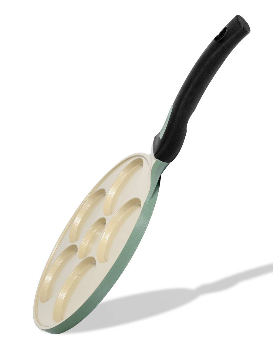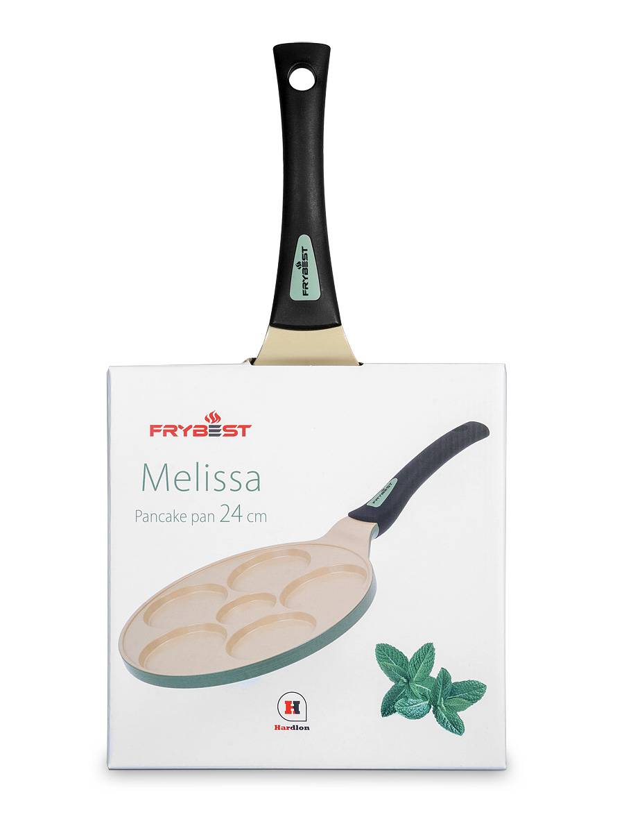 Сковорода для оладий 24см FRYBEST Melissa с керамическим покрытием Hardlon — элегантная и изысканная классика в пастельном мятно-зелёном цвете подойдёт под любой интерьер кухни.