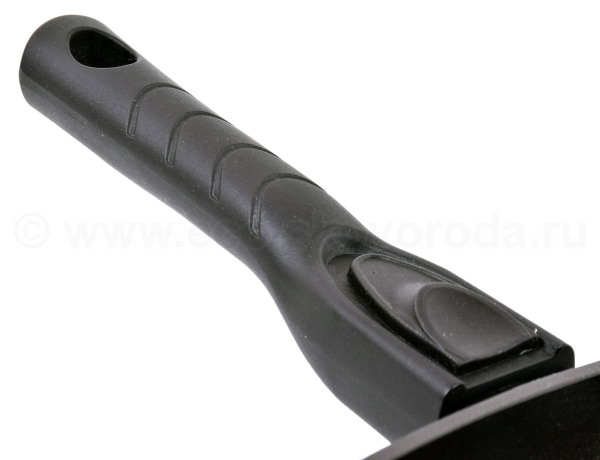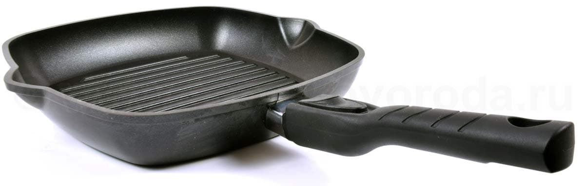 - Достоинства: Хороший материал, съёмная ручка позволяет готовить в духовке, отличная теплопроводность.