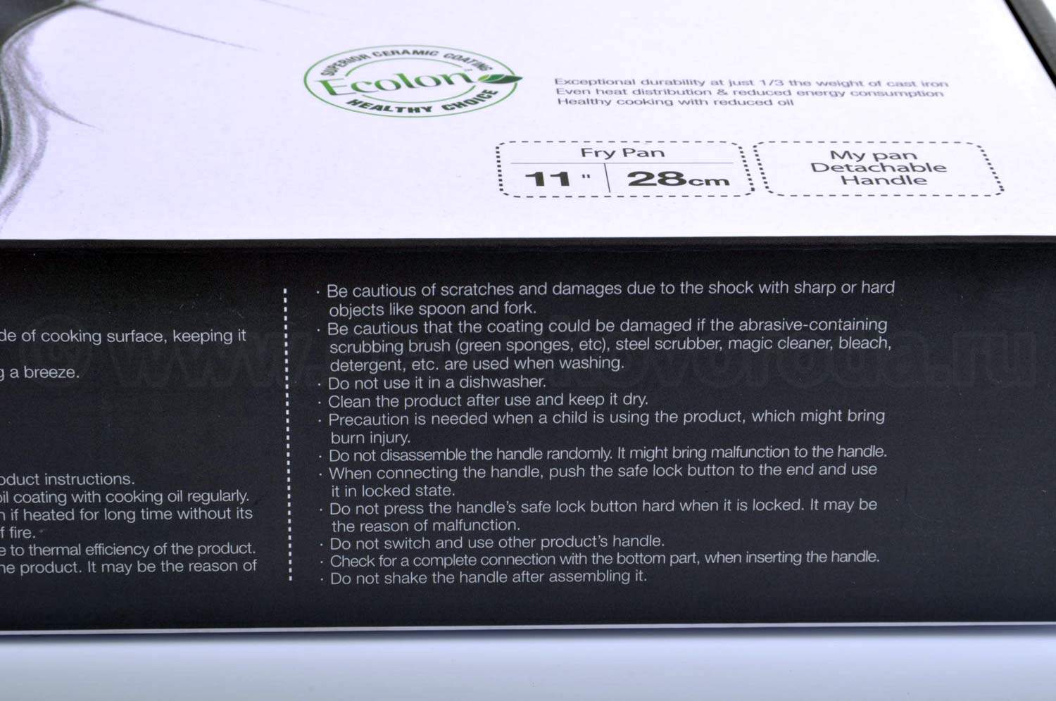 Съемная ручка позволяет экономить место при хранении, размещать посуду в углу шкафа, холодильнике или даже в самых маленьких посудомоечных машинах (должна быть спец. маркировка!).