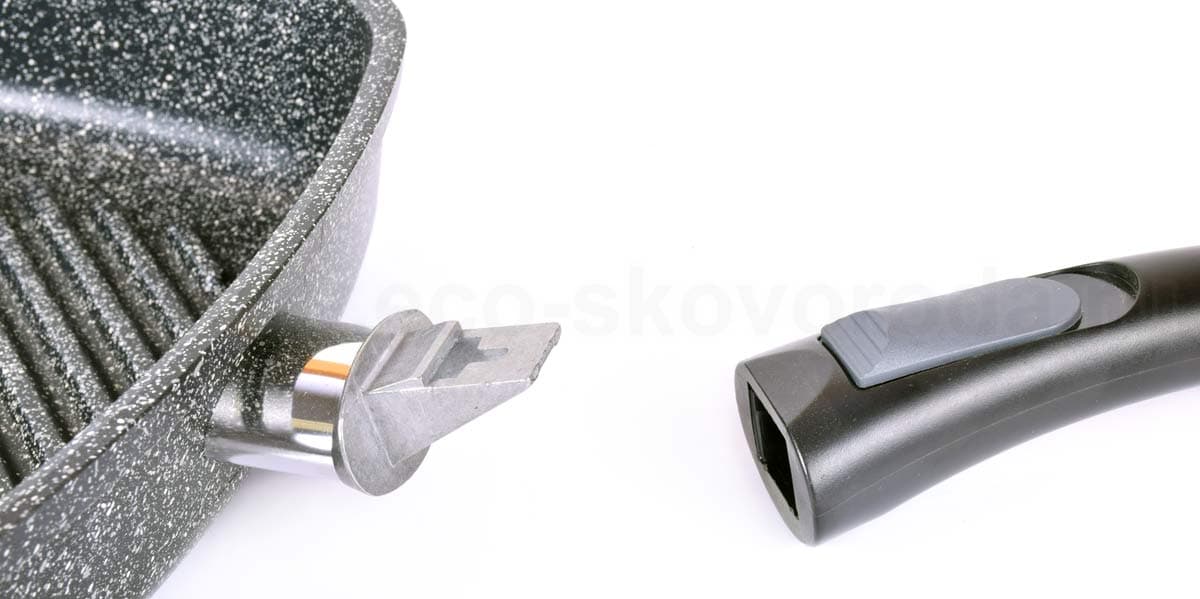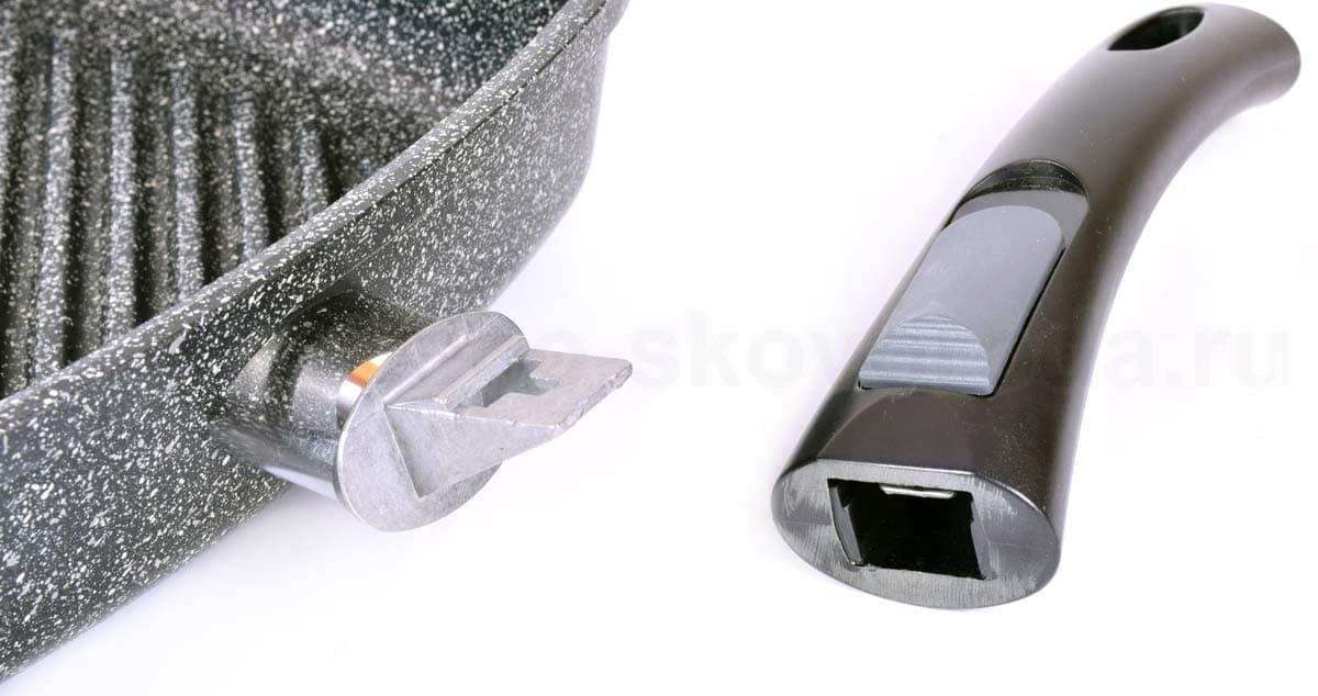 Съемная ручка делает хранение и мытье сковороды простым. Сковороды можно использовать в духовке..