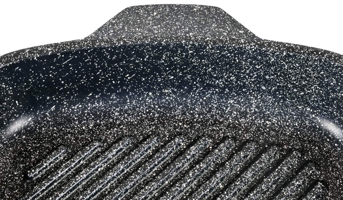 Каменное покрытие является одним из самых прочных и долговечных среди покрытий, не утрачивает свои антипригарные свойства в течение всего срока службы посуды, устойчиво к механическим повреждениям.