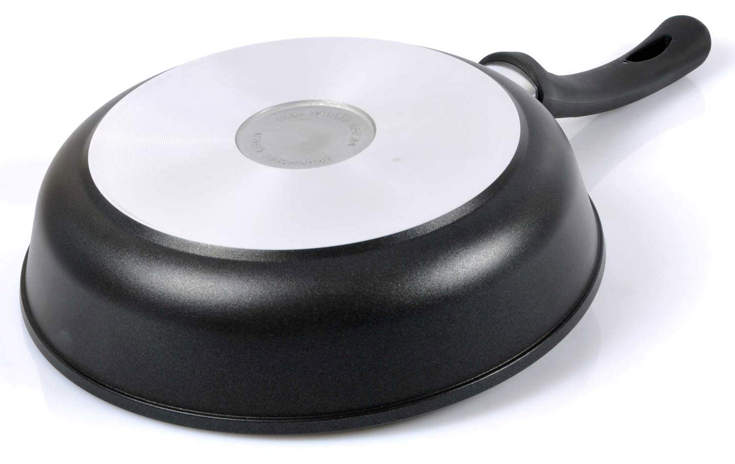 • Идеальный контакт сковороды с плитой обеспечивает гладко проточенное дно. Это способствует экономии электроэнергии, исключает появление потертостей и царапин на варочной поверхности;