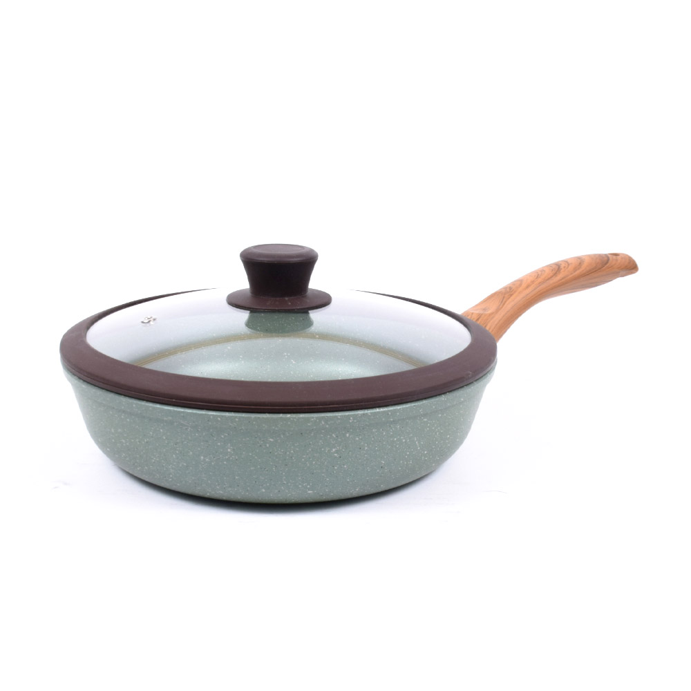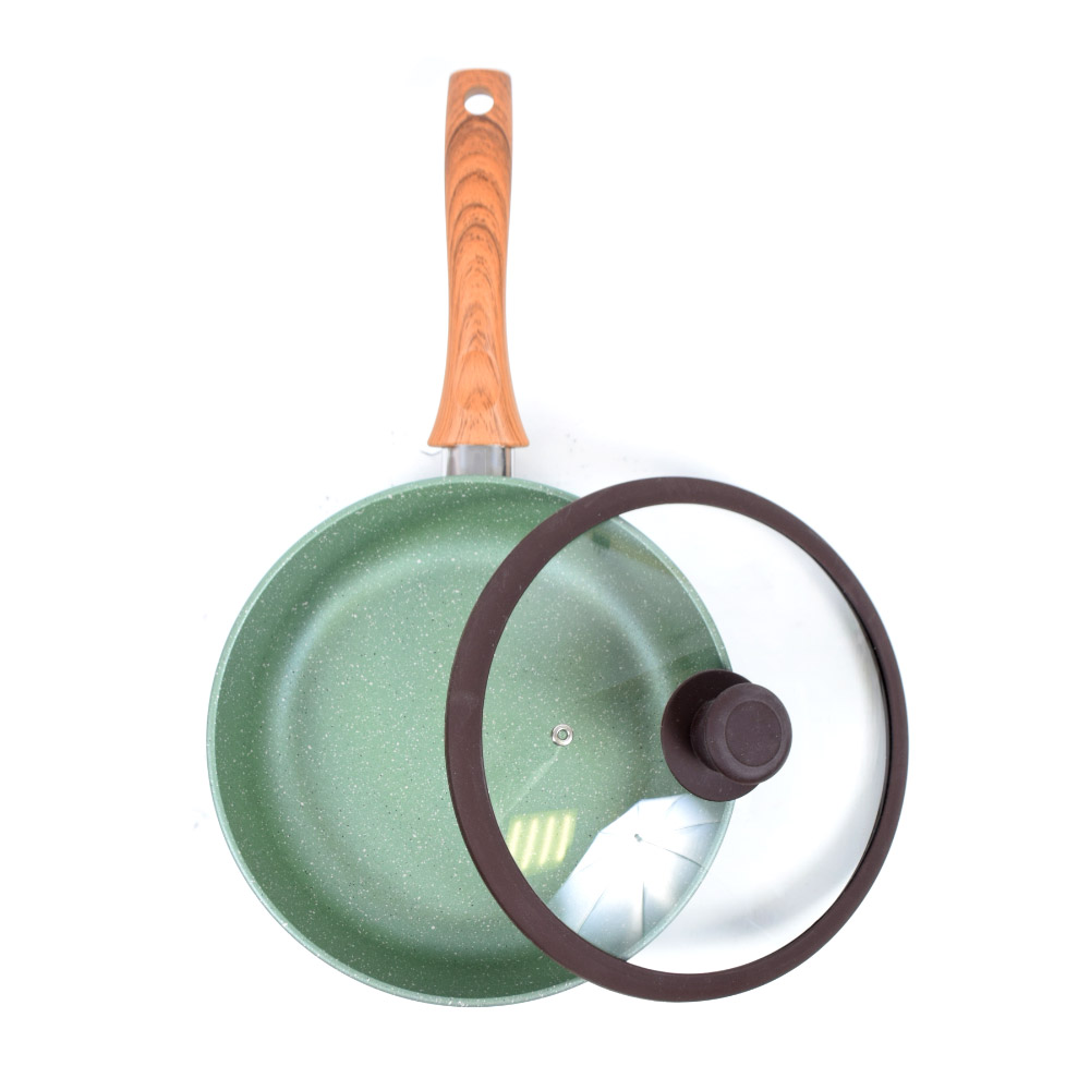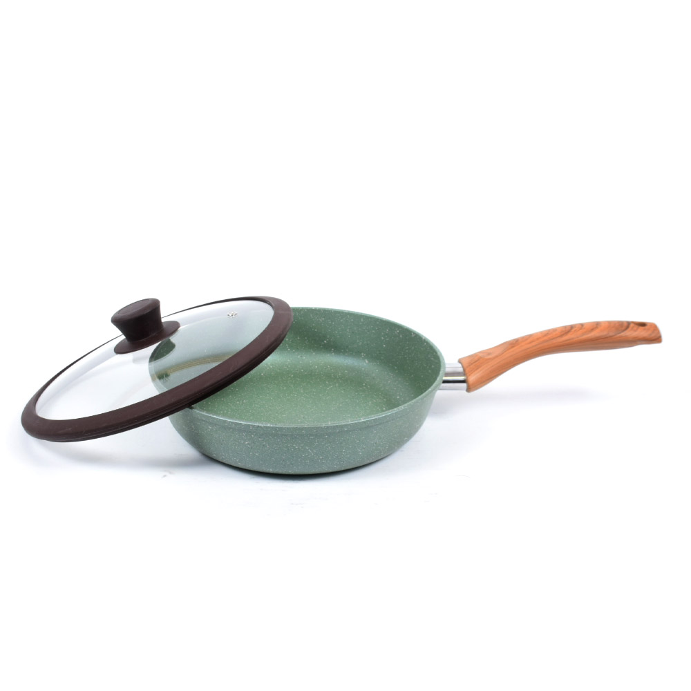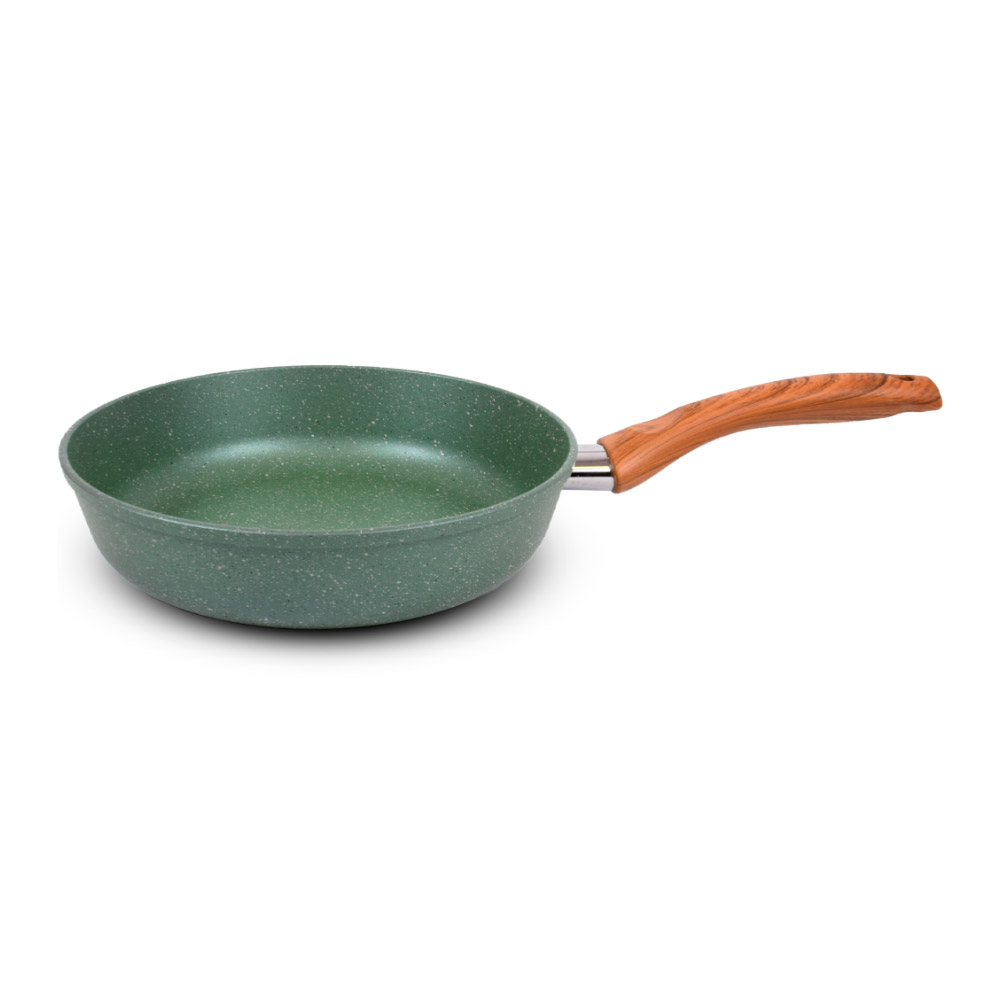 Серия сковород Eco Way выполнена в натуральном зеленом цвете и комплектуется эргономичной ручкой с имитацией дерева, подходит для ежедневного использования, создана из материалов высшего класса безопасности на новейшем оборудовании. Многослойное высококачественное антипригарное покрытие позволяет готовить без масла или с минимальным количеством масла и сохранять натуральный вкус продуктов. Подходит для использования в посудомоечной машине.