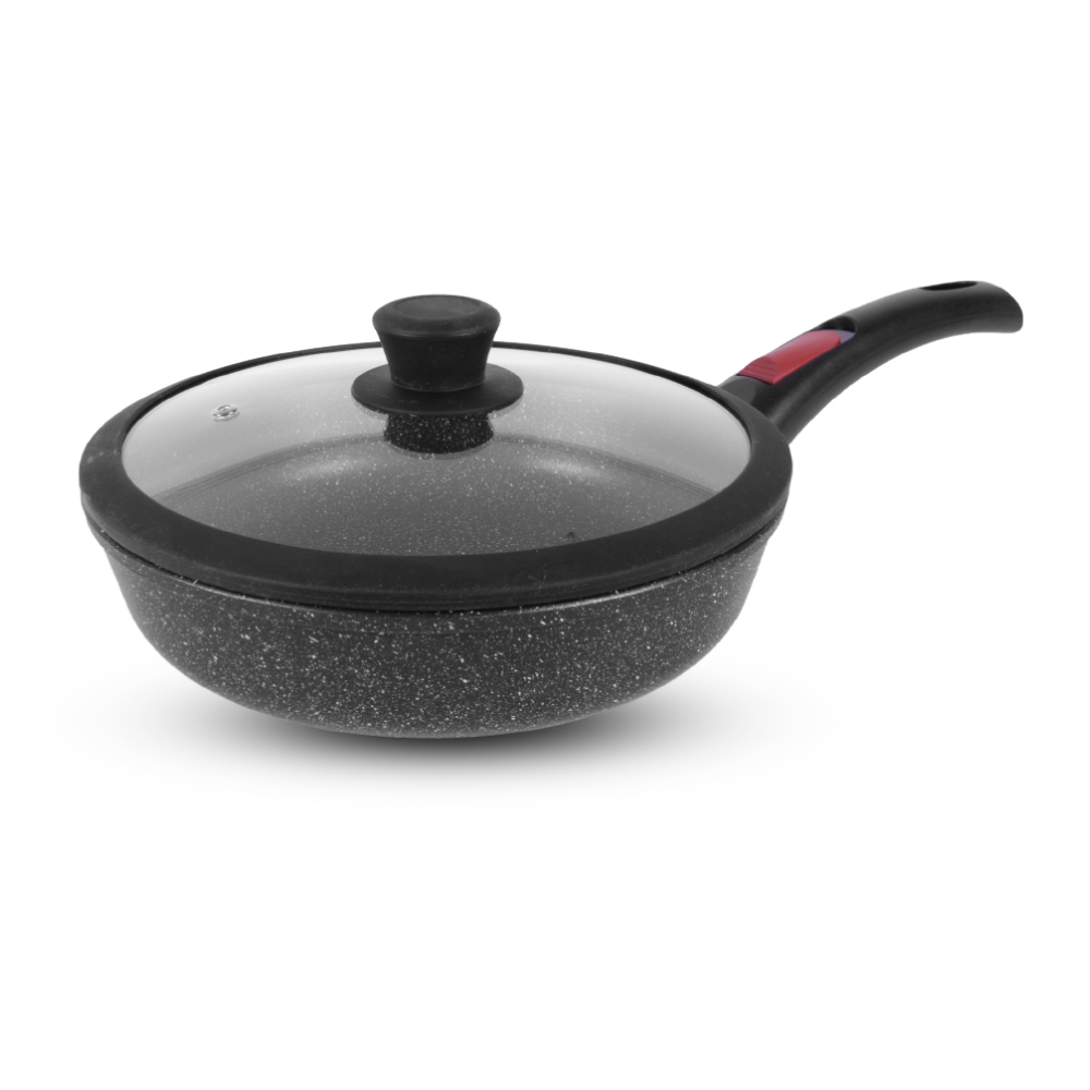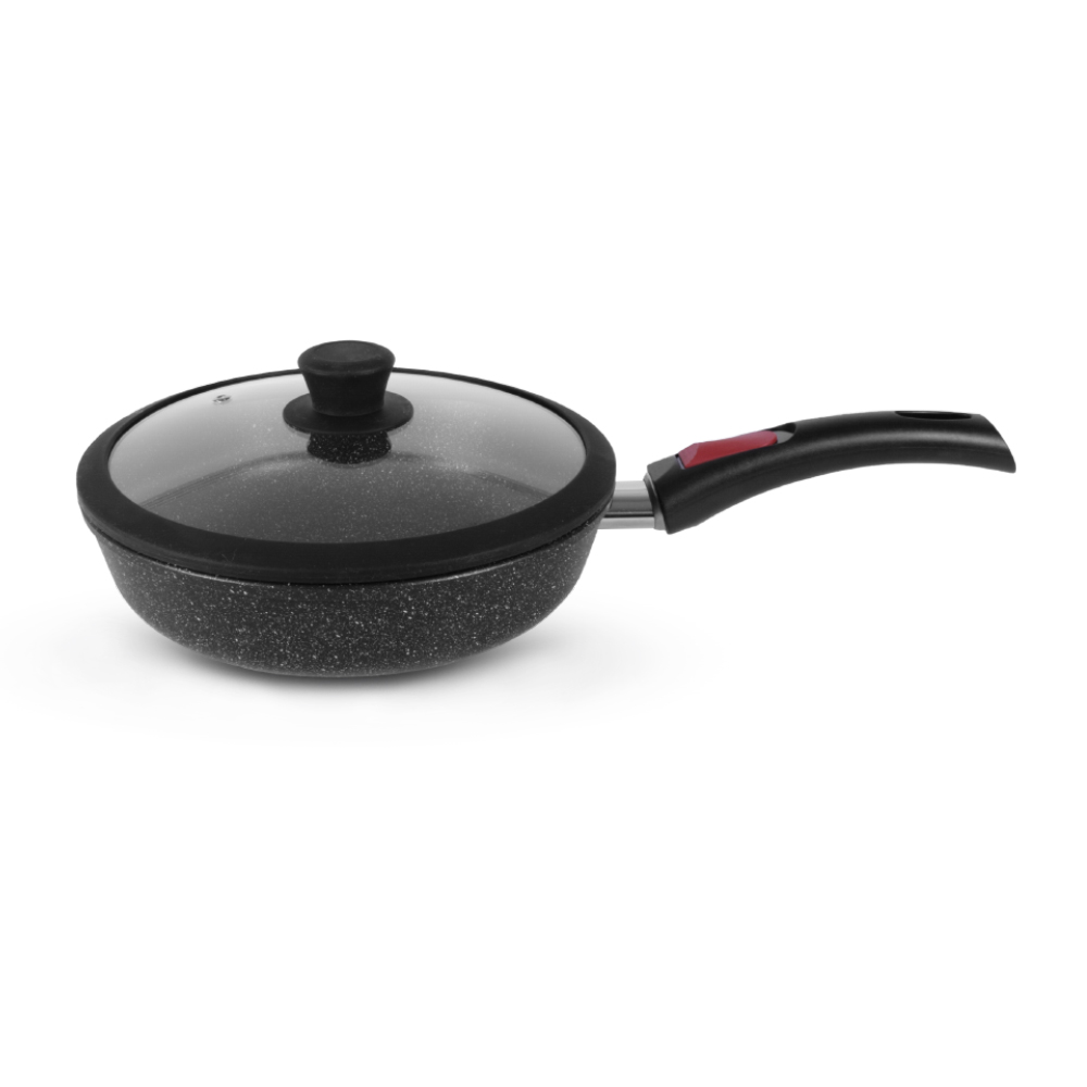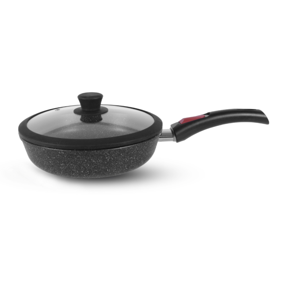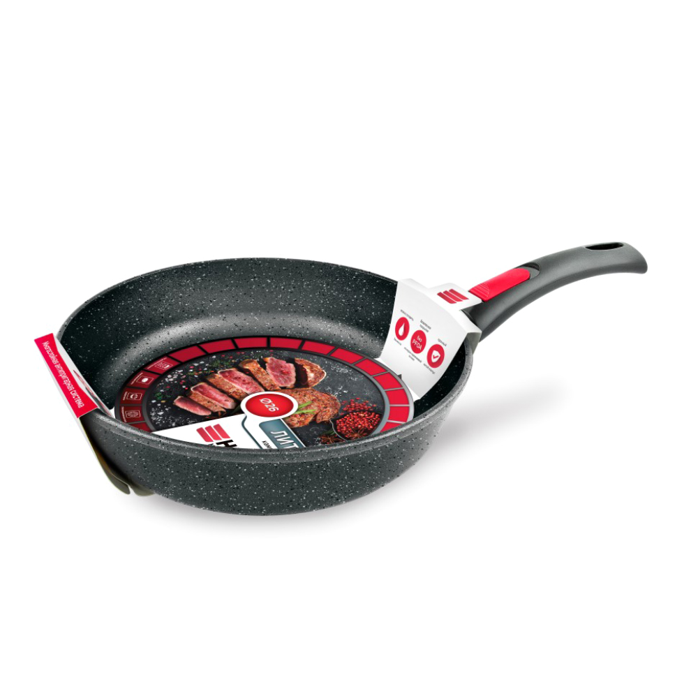 Серии Каменная (Черный гранит), Кавказ, Алтай, Байкал и Карелия от Российского производителя Нева Металл Посуда безусловно заслуживают Вашего внимания, так как в их производстве применяются только проверенные технологии. Сковороды из серии Природные минералы выполнены из алюминия по принципу "золотого сечения". Каменное покрытие на водной основе обладает повышенной износостойкостью и хорошими антипригарными качествами за счет нанесения покрытия методом напыления.