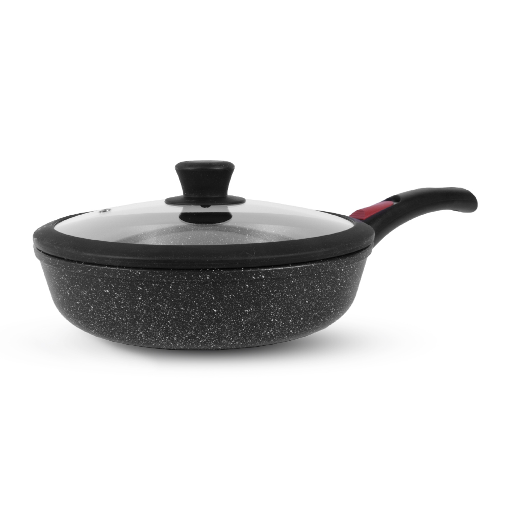 Каменное покрытие является одним из самых прочных и долговечных среди покрытий, не утрачивает свои антипригарные свойства в течение всего срока службы посуды, устойчиво к механическим повреждениям.