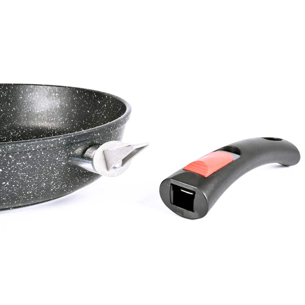 Съемная ручка позволяет экономить место при хранении, размещать посуду в углу шкафа, холодильнике или даже в самых маленьких посудомоечных машинах (должна быть спец. маркировка!).