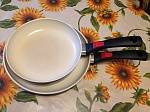 Посуда обладает антипригарным покрытием: пища не будет прилипать, легко сделать золотистую корочку при жарке, легко мыть.