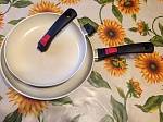 • Достоинства: Пока была новой всё устраивало. Удобные, съёмные ручки, удобно складываются сковороды друг в друга, не прилипает продукт только с добавлением масла.