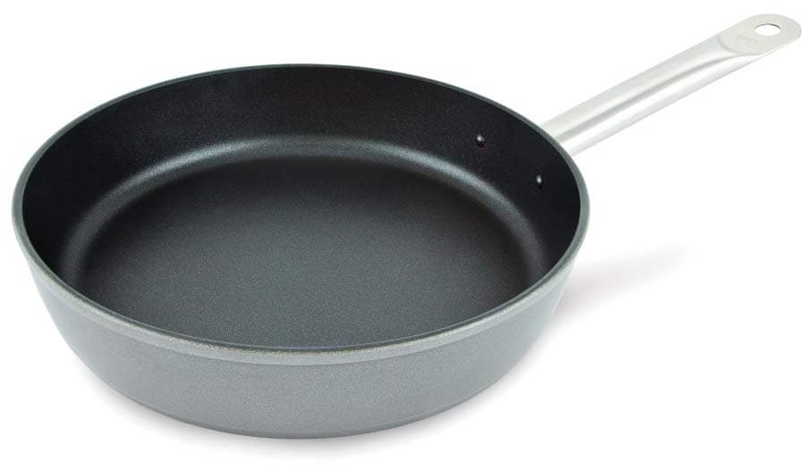 Сковорода НЕВА МЕТАЛЛ ПОСУДА Prof Master изготовлена из высококачественного алюминия с антипригарным покрытием на водной основе. Подходит ко всем типам плит, кроме индукционных. Можно использовать в посудомоечной машине. Произведена в России и имеет гарантию 3 года.