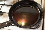 Благодаря толстому дну пища прогревается наиболее равномерно. У Вас не будет ситуаций, как с тонким дном, когда при жарке большого куска мяса поверхность куска уже подгорает, а внутри мясо еще сырое. Утолщенное дно является фильтром от больших и резких поступлений тепла, медленно аккумулирует его и равномерно передает в пищу.