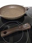 Отдельно стоит отметить ручки, используемые в серии TIMA/TVS Art Granit. Ручки сделаны по запатентованной технологии Soft-Touch (мягкое прикосновение) из бакелита. Ручки из такого материала приятны на ощупь (напоминают силикон), они удобно сидят в руке без риска выскользнуть и не нагреваются при приготовлении.