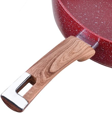 Сотейник 24см MAYER & BOCH Дерево с каменным покрытием и крышкой, красный MAYER & BOCH M&B Wood Сотейник MAYER & BOCH с каменным покрытием отлично подойдет жарки и тушения больших порций, запекания, если это позволяет материал ручек, и способен заменить собой как сковороду, так и кастрюлю. Подходит для всех типов плит. Можно мыть в посудомоечной