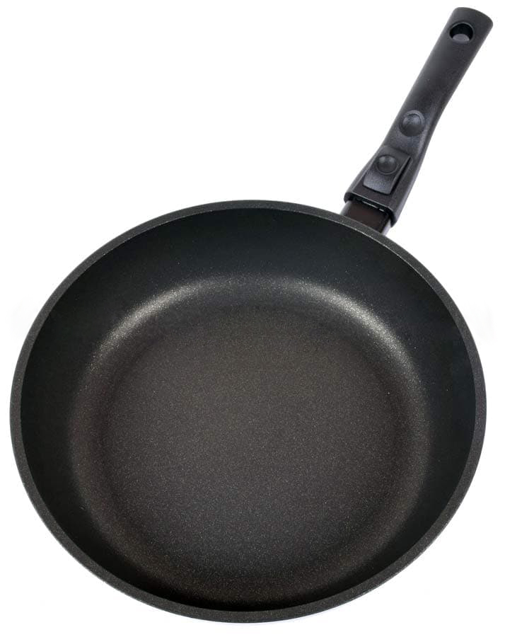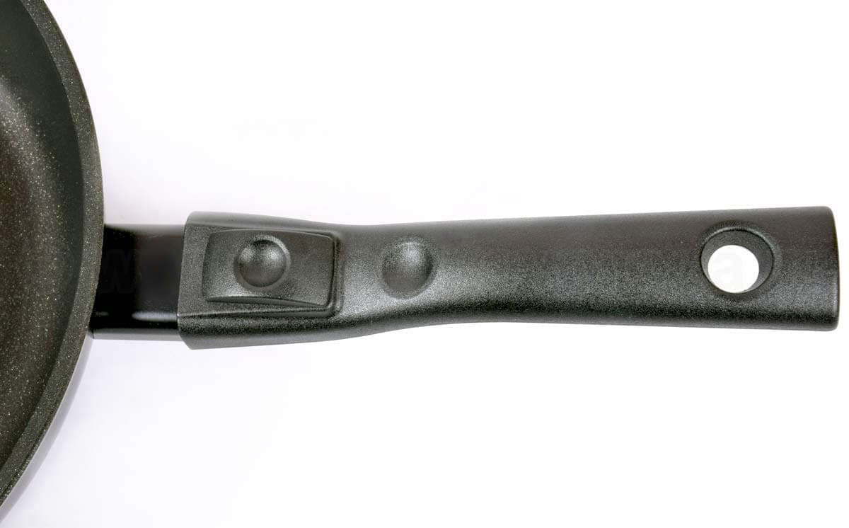 Сковороды укомплектованы удобными эргономичными съемными или фиксированными ручками, которые идеально лежат в руке. В каждой ручке есть отверстие для хранения посуды в повешенном состоянии.