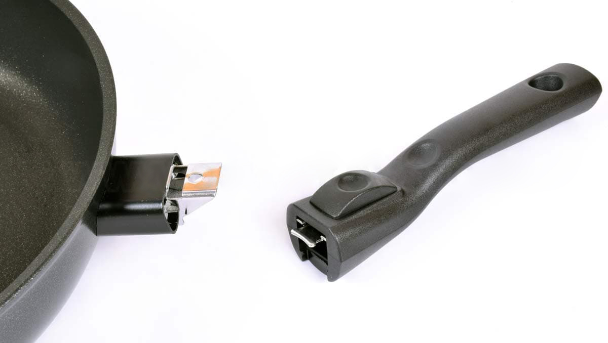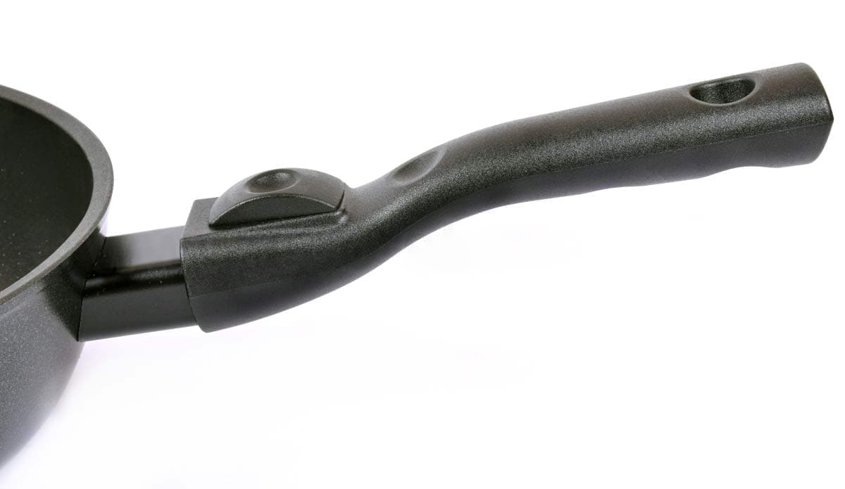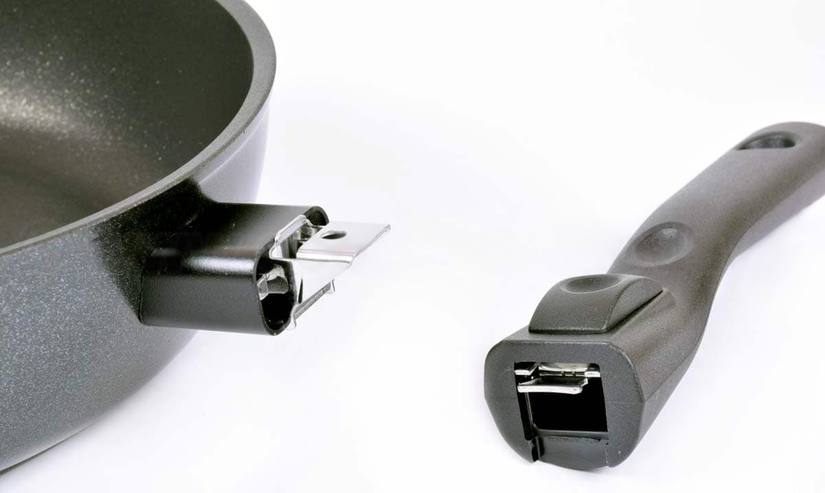 В основе съемных ручек используется надежный стальной механизм, который не расшатывается и безотказно работает в течение всего срока службы посуды.
