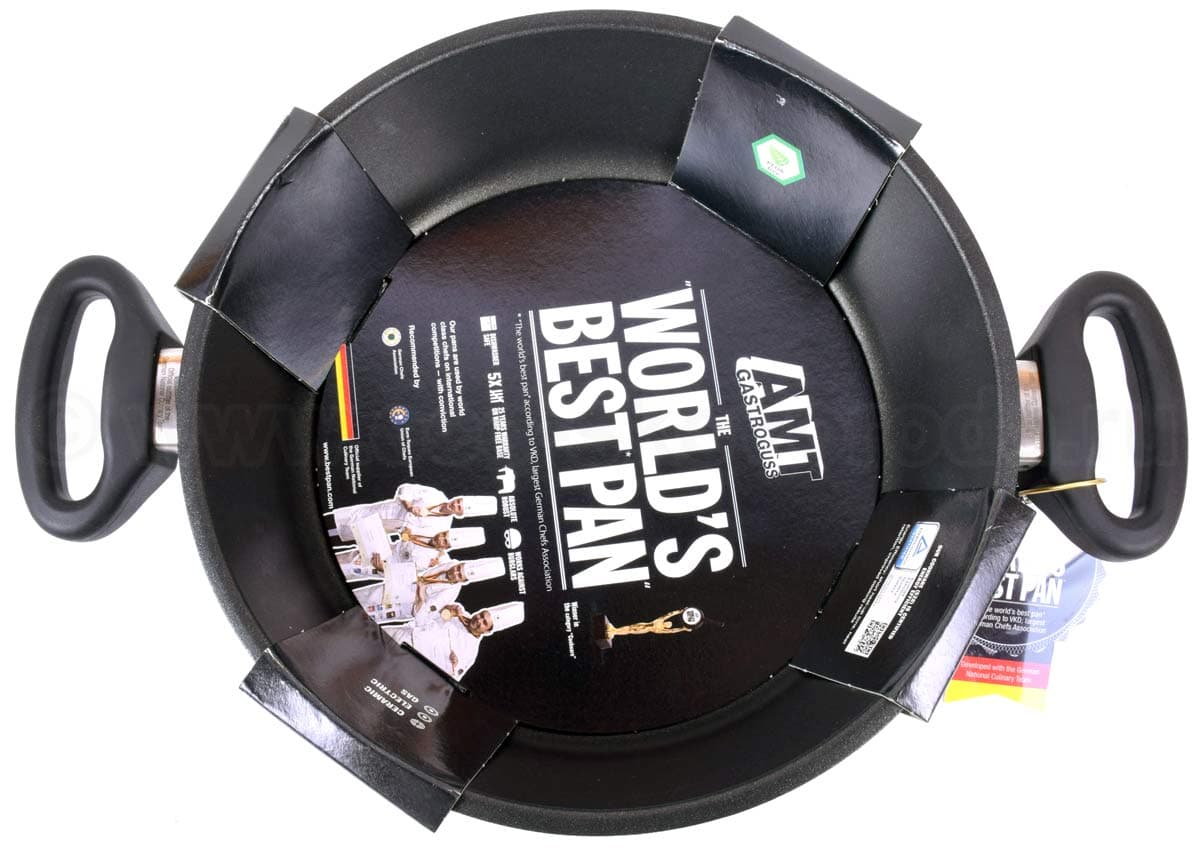Компания AMT производит всю свою продукцию в Германии под строжайшим контролем над качеством. Каждая литая сковорода AMT GASTROGUSS отливается вручную из алюминиевого сплава высшего сорта. Запатентованный антипригарный слой LOTAN – экологически чистый, обладает антибактериальным эффектом. Шестислойное покрытие делает дно особо прочным, его невозможно деформировать даже при высоких температурах.