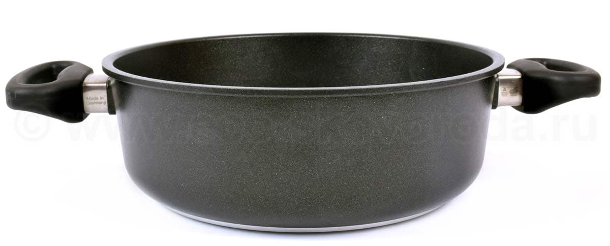 Сотейник 26см/3,6л AMT GASTROGUSS Frying Pans титановое покрытие Lotan, Германия Amt gastroguss Frying Pans Компания AMT производит всю свою продукцию в Германии под строжайшим контролем над качеством. Каждая литая сковорода AMT GASTROGUSS отливается вручную из алюминиевого сплава высшего сорта. Запатентованный антипригарный слой LOTAN – экологически чистый, обладает антибактериальным эффектом. Шестислойное покрытие делает дно особо прочным, его