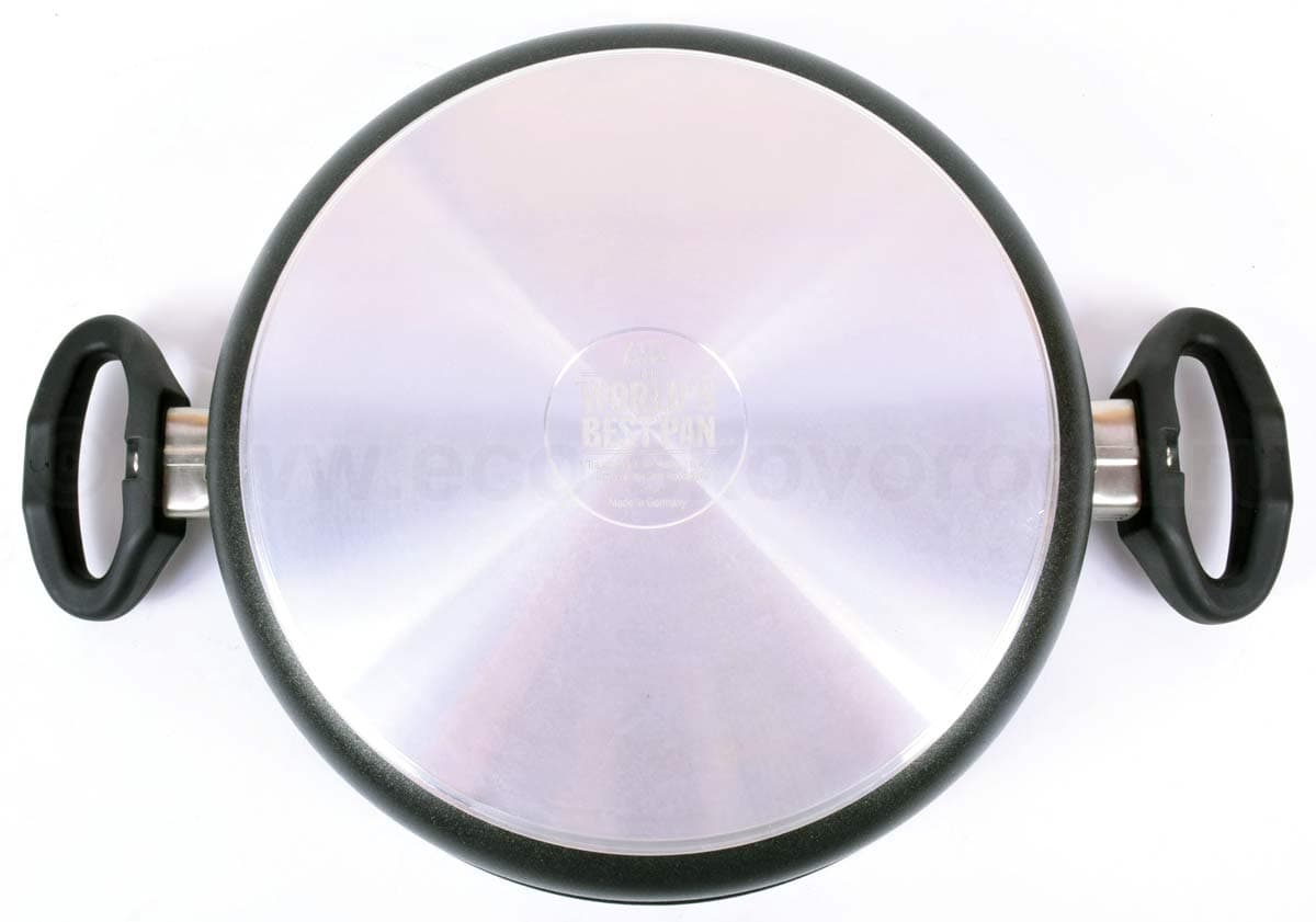 Благодаря толстому дну пища прогревается наиболее равномерно. У Вас не будет ситуаций, как с тонким дном, когда при жарке большого куска мяса поверхность куска уже подгорает, а внутри мясо еще сырое. Утолщенное дно является фильтром от больших и резких поступлений тепла, медленно аккумулирует его и равномерно передает в пищу.