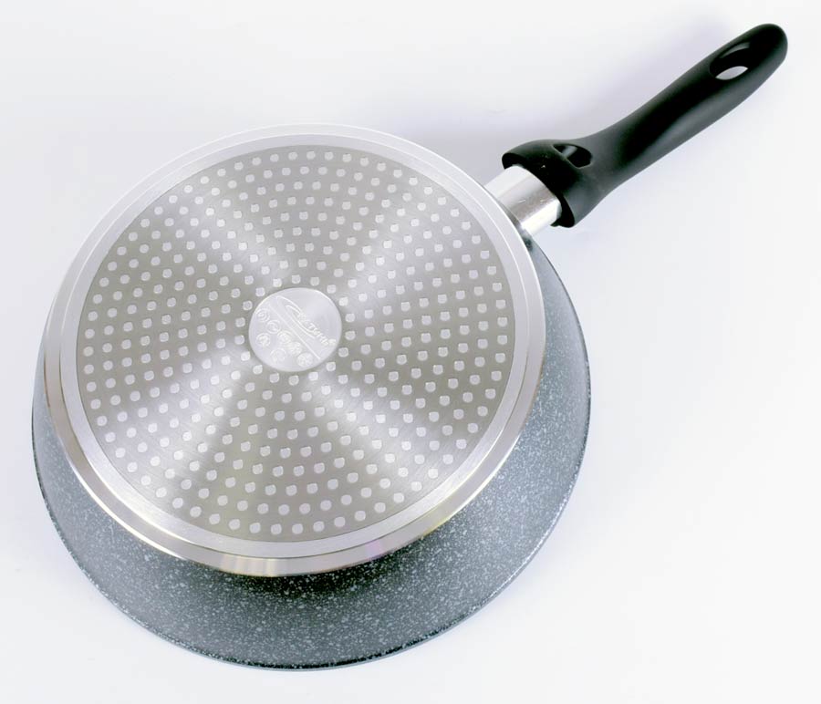 Высококачественное трехслойное антипригарное покрытие PFLUON на основе структуры гранита усилено сверхпрочными минералами и усовершенствованно за счет микро-рельефной поверхности, которая усиливает антипригарные свойства посуды. Наносится методом напыления в несколько слоев.