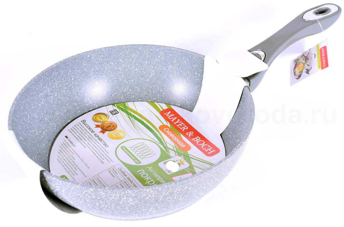 Сотейник 26см MAYER & BOCH с каменным покрытием, серый MAYER & BOCH M&B Smooth Сотейник MAYER & BOCH с каменным покрытием отлично подойдет жарки и тушения больших порций, запекания, если это позволяет материал ручек, и способен заменить собой как сковороду, так и кастрюлю. Подходит для всех типов плит. Можно мыть в посудомоечной