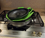 Уникальность изделий этой линейки буквально бросается в глаза: устойчивое к царапинам антипригарное покрытие с супертвердой поверхностью, по которому даже металлические кухонные инструменты скользят, не царапая его.