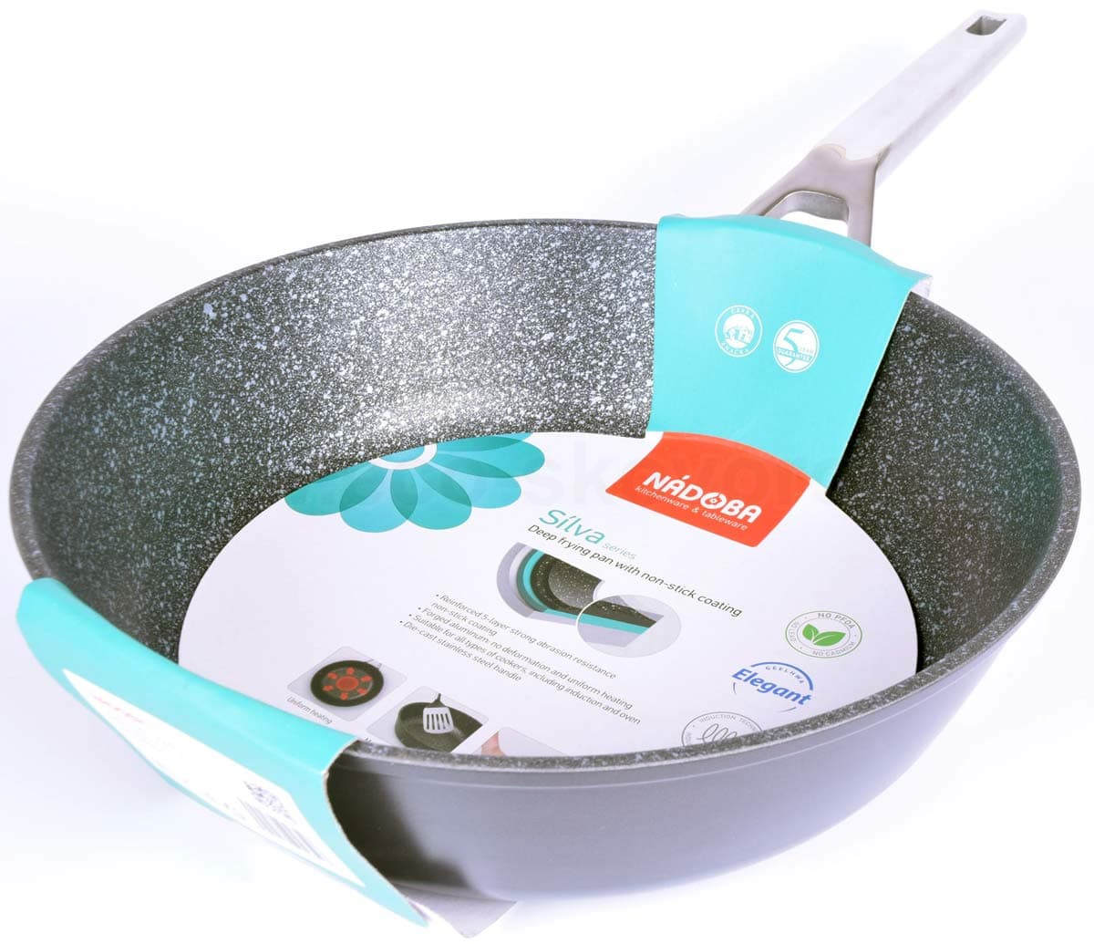 - Покрытие сковородок NADOBA серии Silva полностью безопасно, не содержит PFOA, кадмий или свинец.