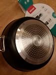 Утолщенное дно уберегает продукты от сгорания, дает более равномерное распределение тепла, прогрев посуды, аккумулирует тепло и не дает пище остывать долгое время. При таком подходе Вы можете выключать плиту заранее, а пища дойдет естественным способом и ее не надо разогревать несколько раз. Таким образом достигается экономия электроэнергии.