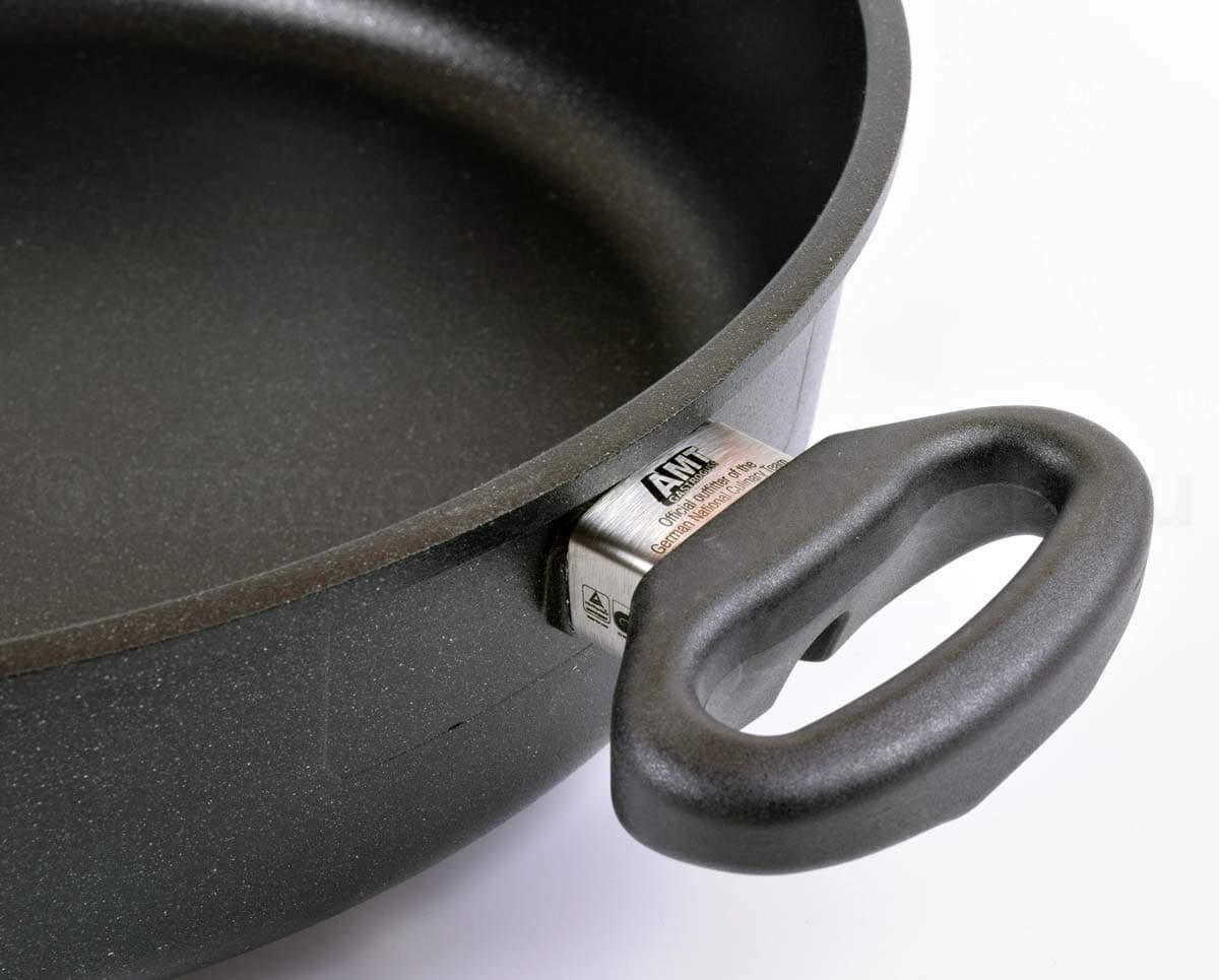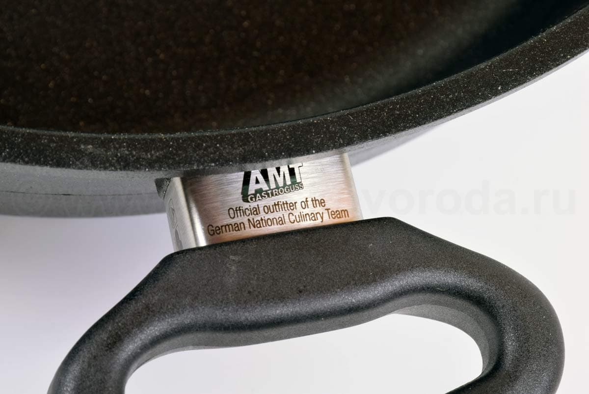 Компания AMT производит всю свою продукцию в Германии под строжайшим контролем над качеством. Каждая литая сковорода AMT GASTROGUSS отливается вручную из алюминиевого сплава высшего сорта. Запатентованный антипригарный слой LOTAN – экологически чистый, обладает антибактериальным эффектом. Шестислойное покрытие делает дно особо прочным, его невозможно деформировать даже при высоких температурах.