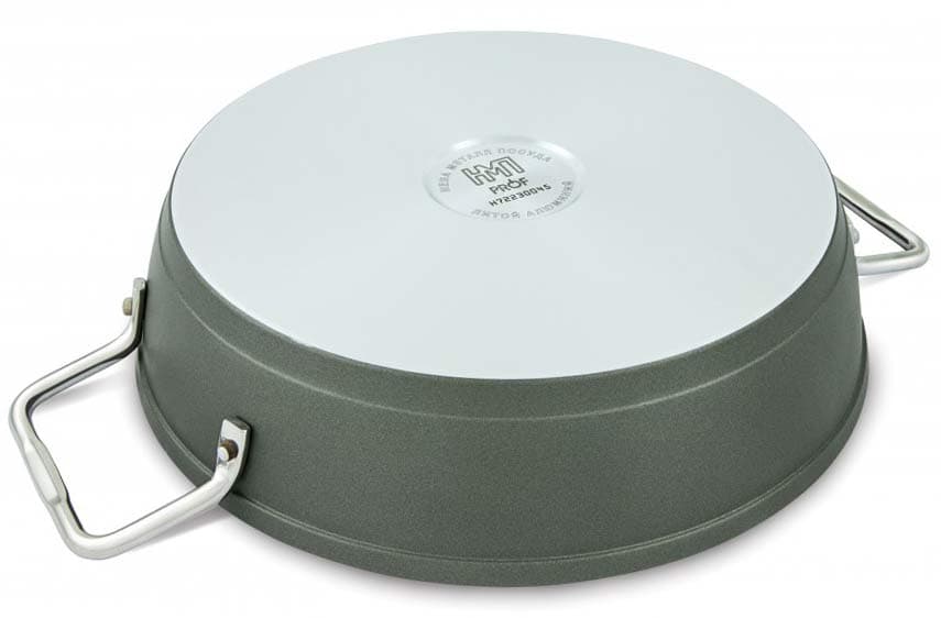 - Покрытие износостойкое, за счет состава и улучшенной структуры с добавлением частиц кремния, потертости и царапины не ухудшат антипригарных свойств покрытия. Можно использовать металлические лопатки и ложки.