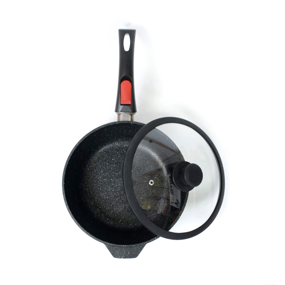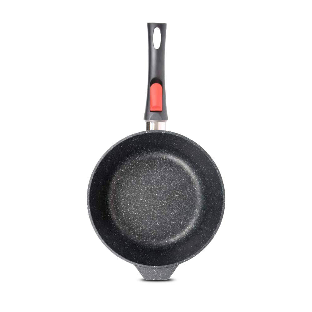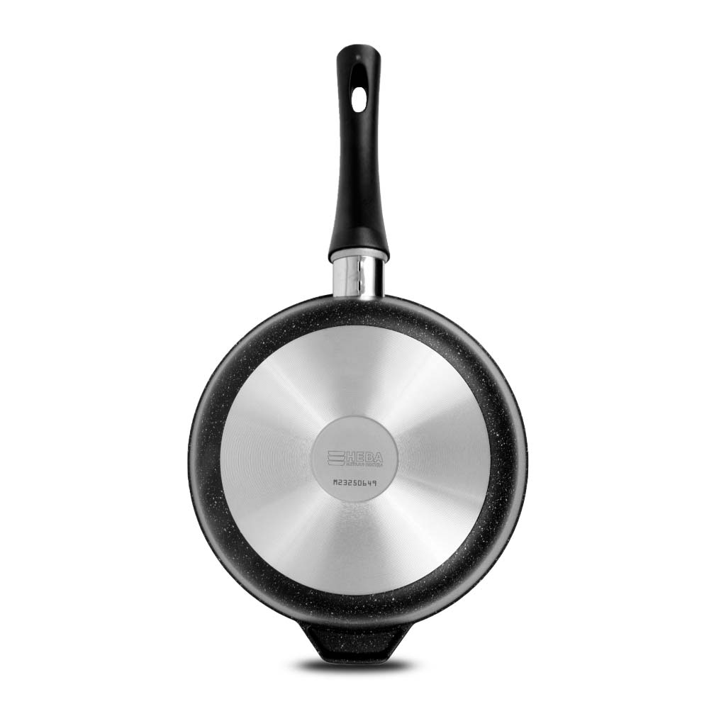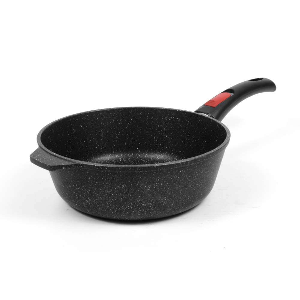 Сковорода для ежедневного использования с антипригарным покрытием в модном цвете - покрытие с эффектом натурального камня «чёрный гранит». Практичный цвет помогает долго сохранять прекрасный внешним вид сковороды.