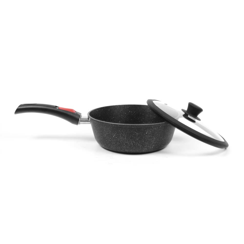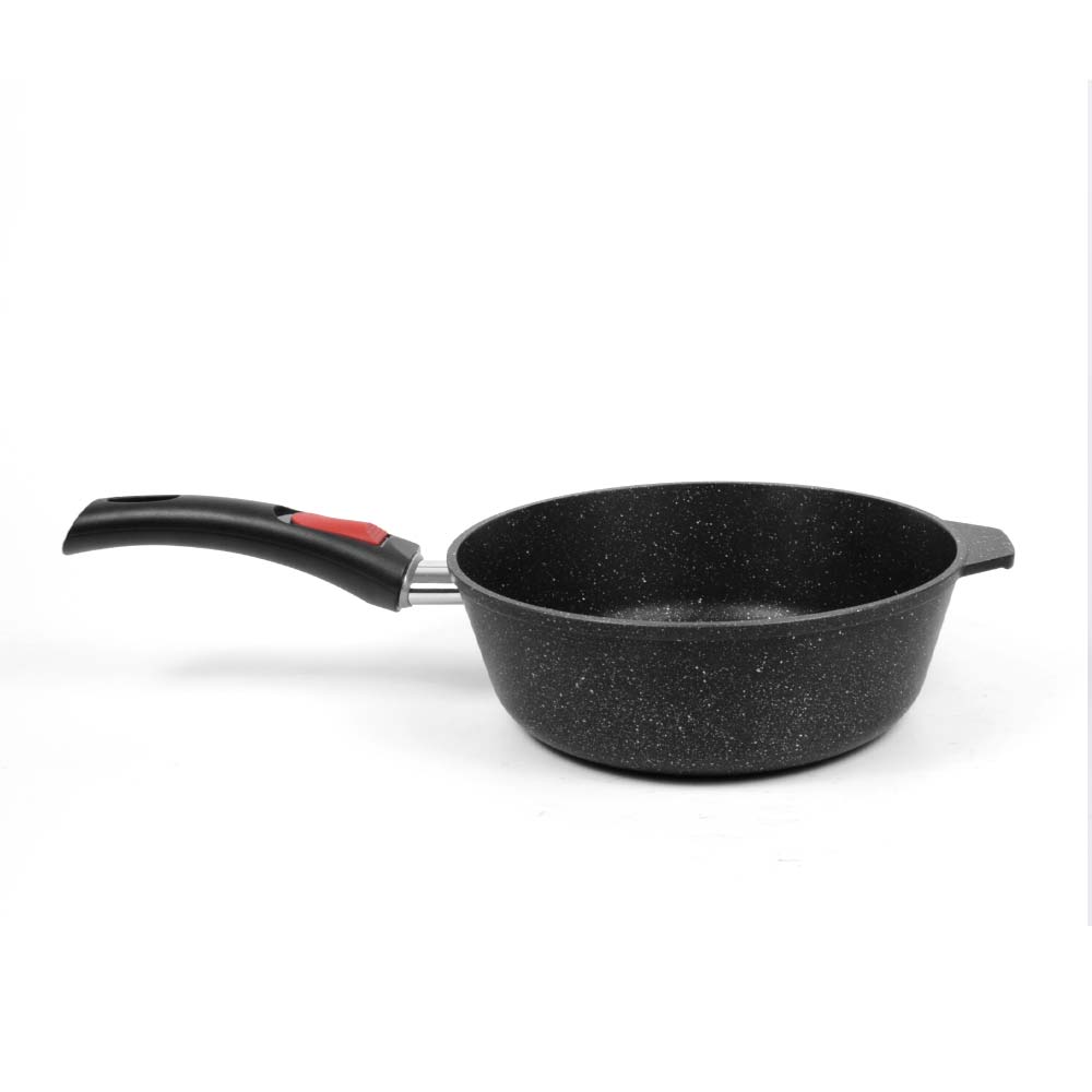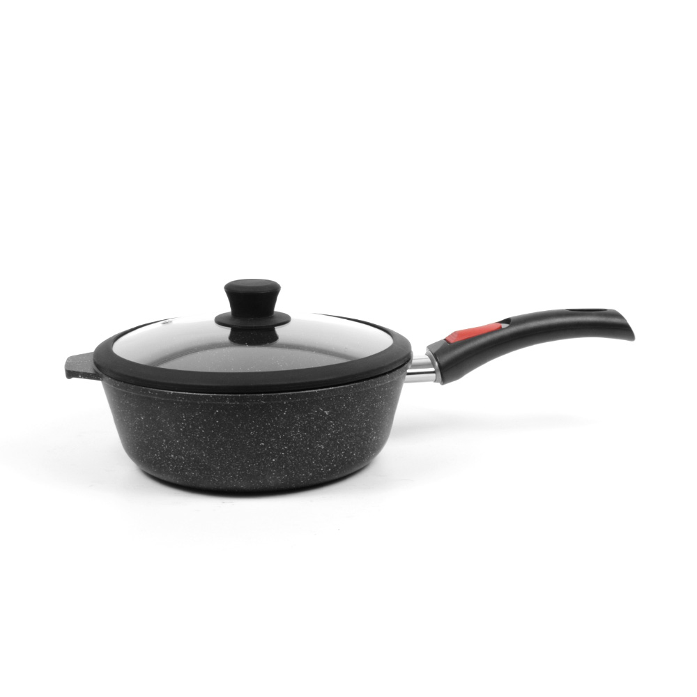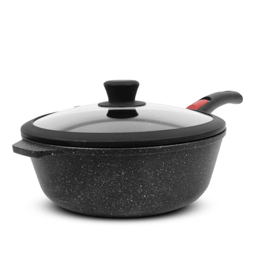 Сковорода для ежедневного использования с антипригарным покрытием в модном цвете - покрытие с эффектом натурального камня «чёрный гранит». Практичный цвет помогает долго сохранять прекрасный внешним вид сковороды.