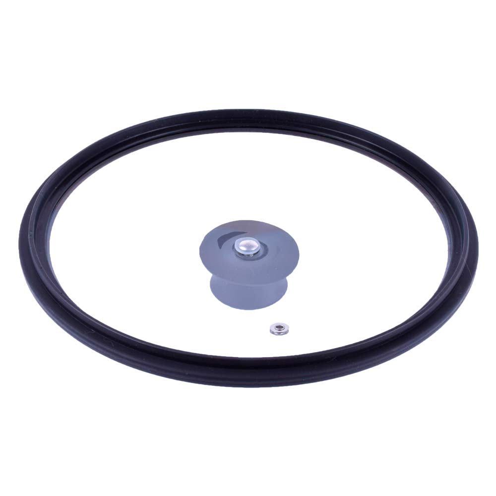 Крышка с силиконовым ободом выполнена из закалённого стекла, имеет встроенный пароотвод. По краям крышки силиконовый обод. Эргономичная, удобная ручка крышки также выполнена из силикона, за счёт чего крышку можно использовать в духовке до 230 °С. Подходят для мытья в посудомоечной машине.