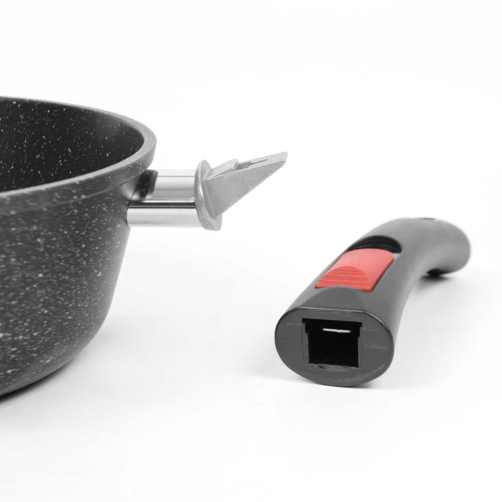 Съемная ручка позволяет экономить место при хранении, размещать посуду в углу шкафа, холодильнике или даже в самых маленьких посудомоечных машинах (должна быть спец. маркировка!).