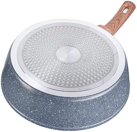 Каменное покрытие является одним из самых прочных и долговечных среди покрытий, не утрачивает свои антипригарные свойства в течение всего срока службы посуды, устойчиво к механическим повреждениям.